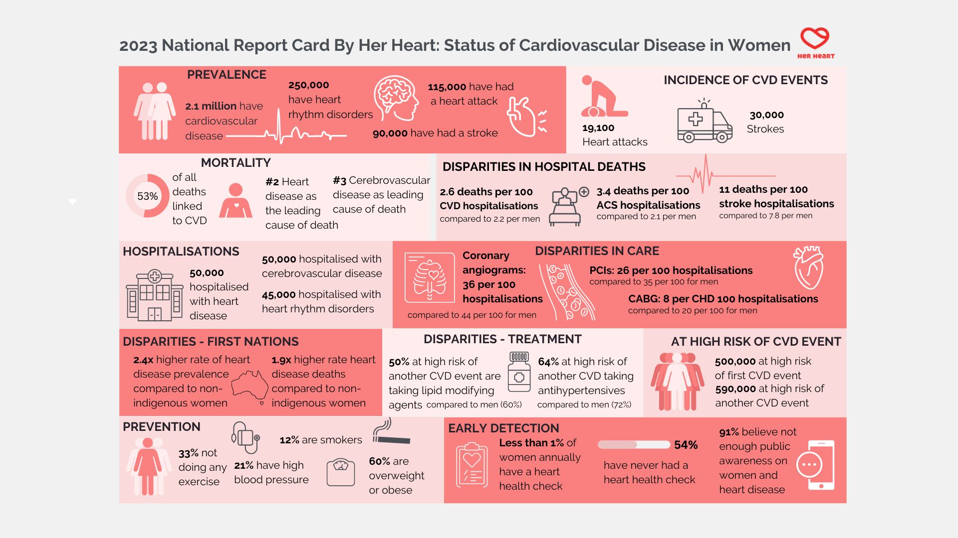 Launched in Heart Week on May 1st 2023, Her Heart has created the First National Report Card on the status of Cardiovascular Disease in women in Australia.